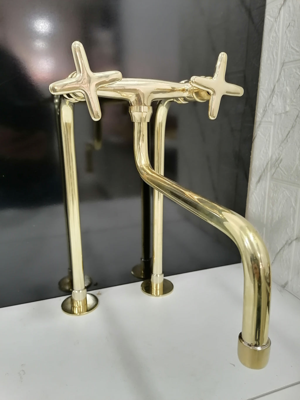 Transform your kitchen into a charming, vintage-inspired space with the Brass and Copper Kitchen Faucet with Long Legs. This stunning fixture seamlessly combines timeless style with modern functionality, adding elegance to your kitchen. Additionally, skilled artisans handcrafted this faucet, ensuring unmatched quality and charm.