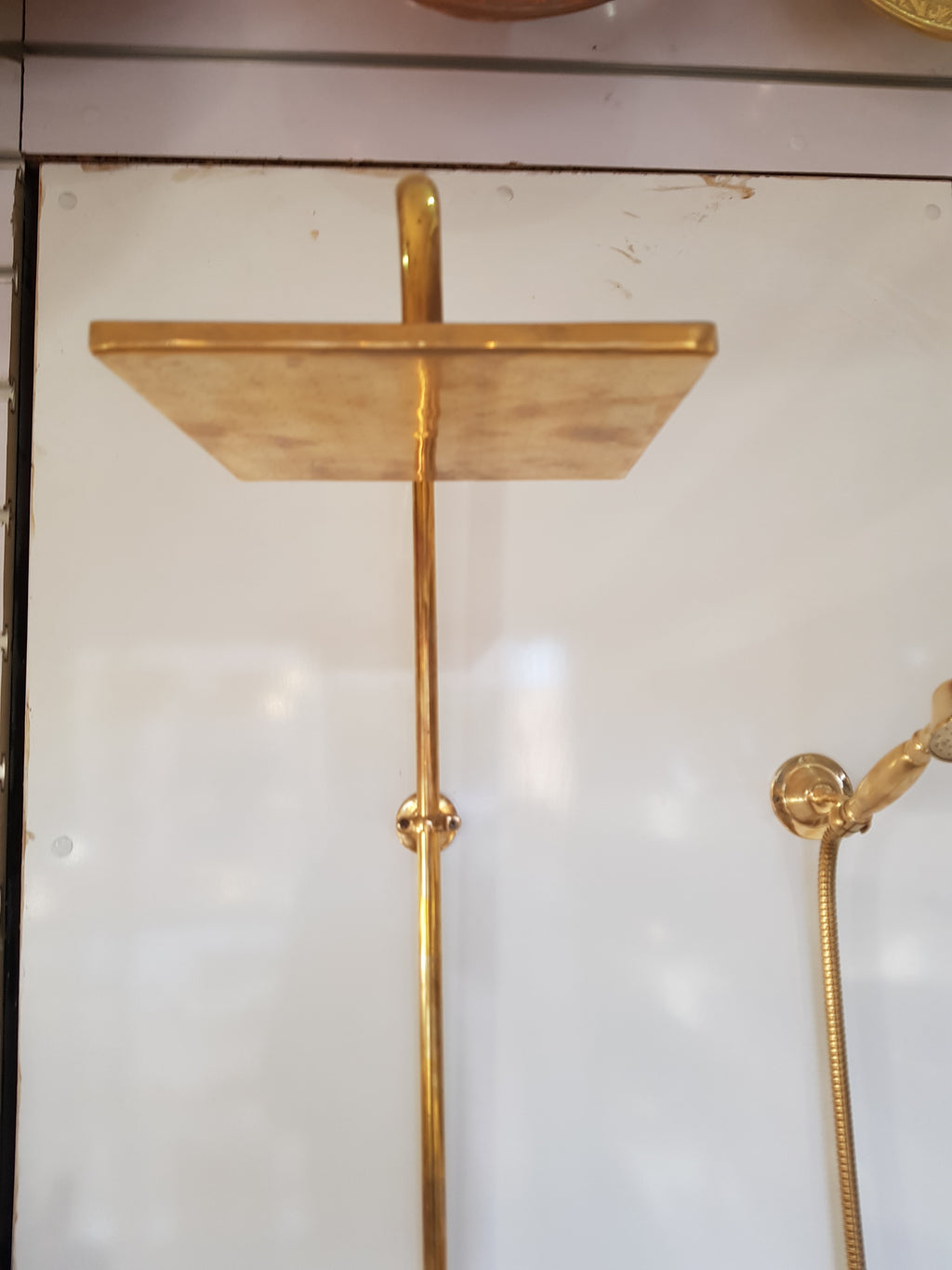 This Unlacquered Brass Shower System is an elegant and luxurious way to add a touch of Vintage bathroom and class to any bathroom. This type of shower system is made from solid brass and is handcrafted to create a unique and beautiful piece of decor. The brass is polished to a high shine and then either painted or lacquered for a durable finish. This shower system can be customized with a variety of options, such as a hand shower, body jets, rain heads, and more. It is a perfect choice for those who want to add a touch of luxury to their bathroom.