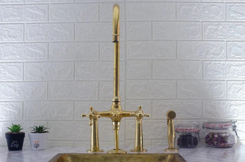 Bridge Kitchen Faucet With Sprayer - Brass Bridge Faucet