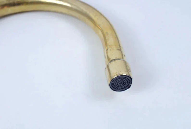 Unlacquered Brass Bridge Kitchen Faucet With Curved Legs And Cross Handles, A special handmade faucet for your kitchen. With its simplicity , it will give a very nice look to your Kitchen.