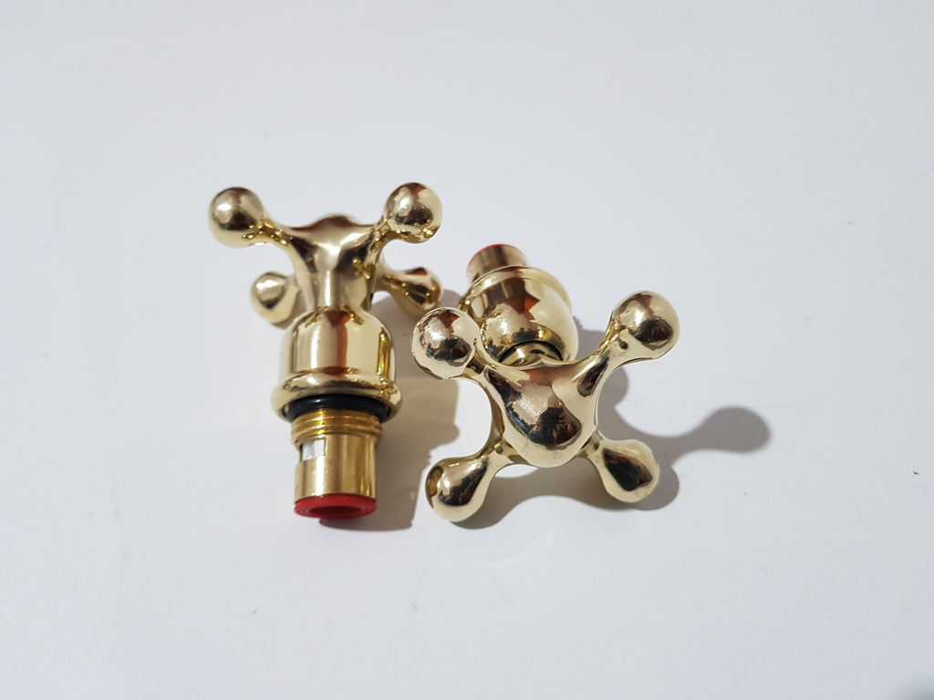 unlacquered brass faucet handles and sprayer base