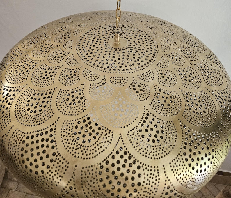 Beautiful handcrafted high-quality brass pendant light, designed to offer you a unique work of art and a sense of comfort.Hang it above the dining table, in the kitchen, or in the living room; let your imagination guide you.