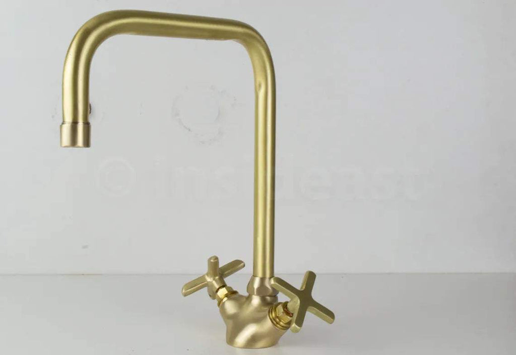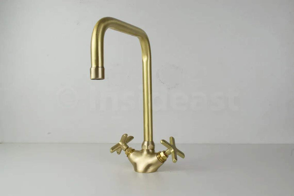 Gooseneck Bathroom Solid Brass Faucet, Unlacquered Brass Faucet With Simple Cross Handles