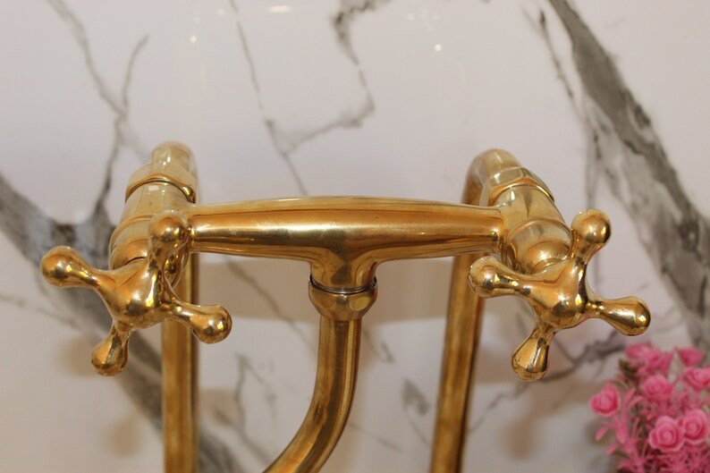 Unlacquered Brass Antique Kitchen Faucet with simple cross handles for modern kitchen vintage style