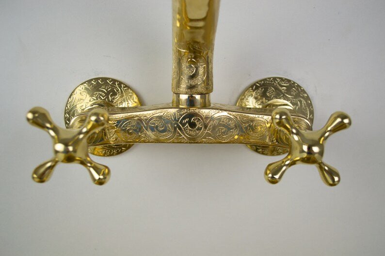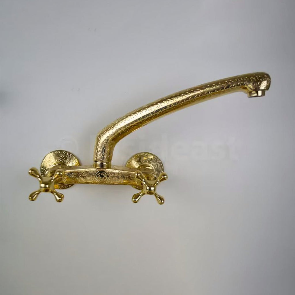 Moroccan Engraved Brass Gold Colour Faucet Tap ,Kitchen Faucet, Brass Wash Basin Faucet,Swan Neck Brass Faucet,