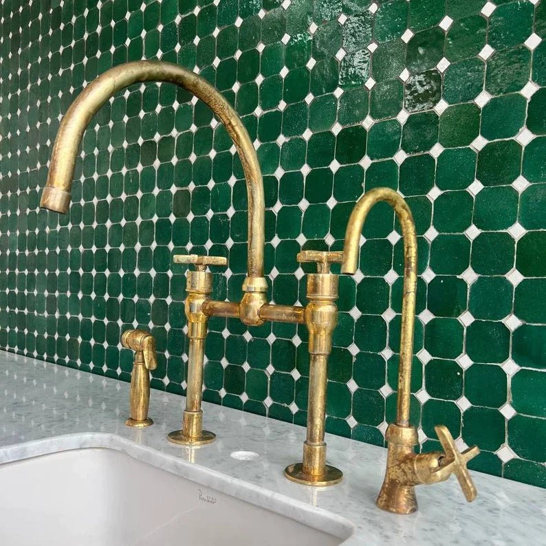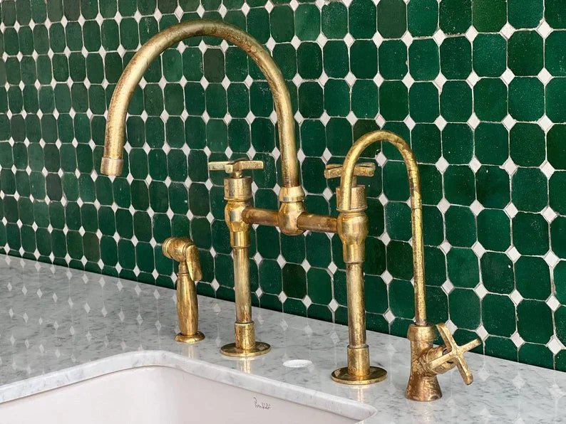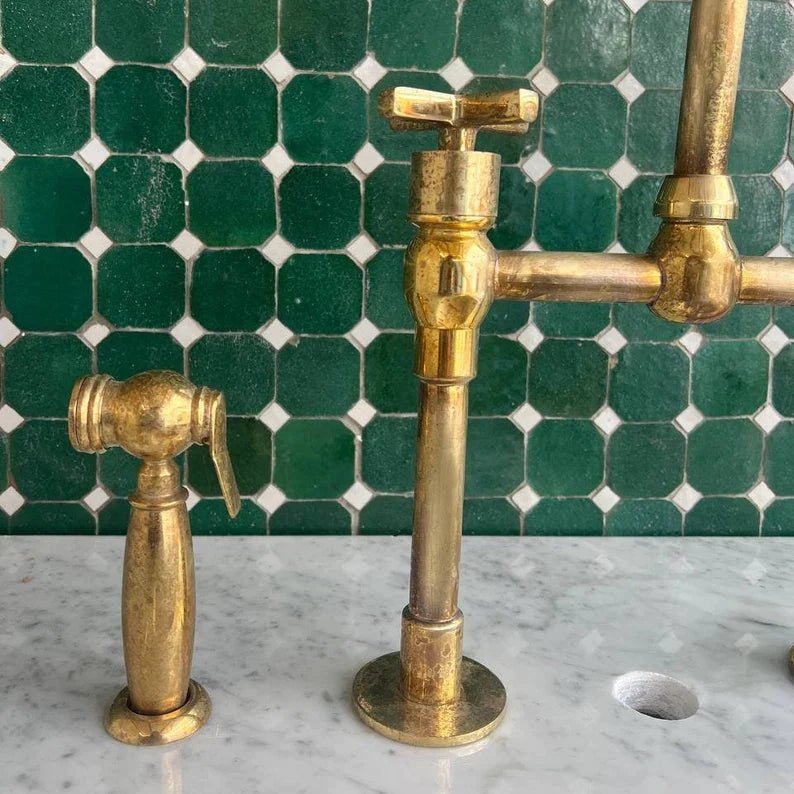 Unlacquered Brass Kitchen Faucet, Solid Brass Square Handles Faucet