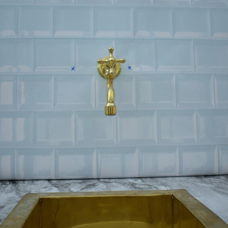 Kitchen Faucet unlaquered Brass Pot Filler, Solid Brass Faucet with Cross Handle